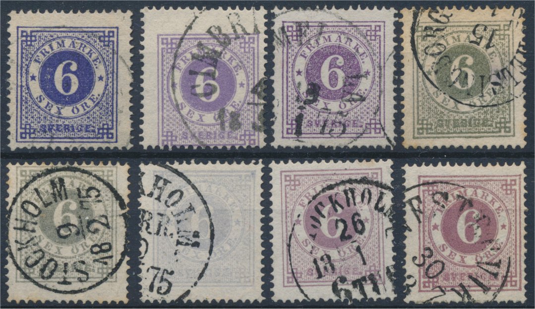 defekta märken), bl.a. ingår följande Michel-Nr 7, 17, 20 (2st), 23, 16W, 27,