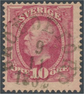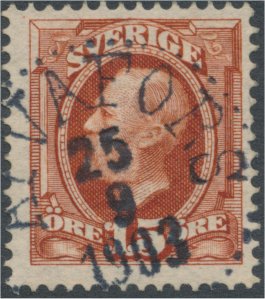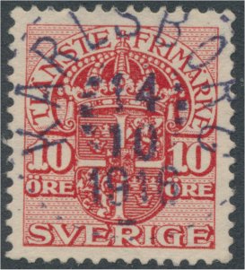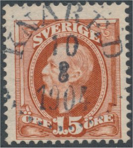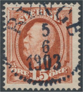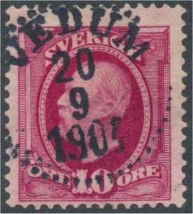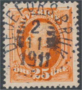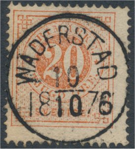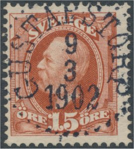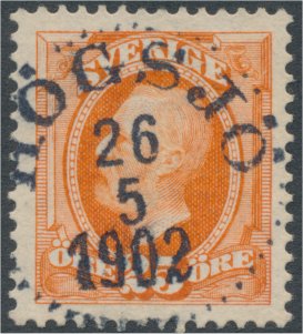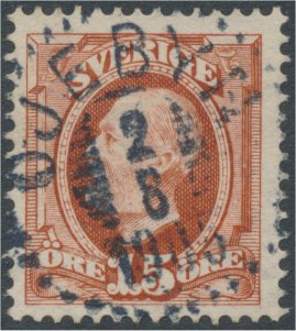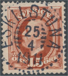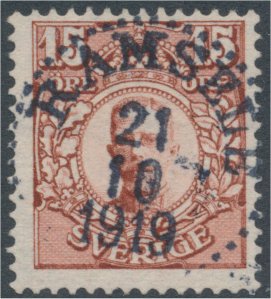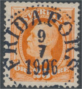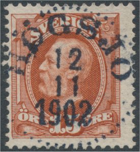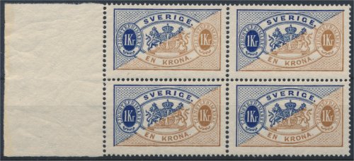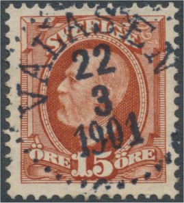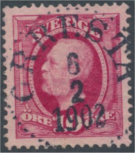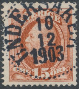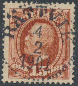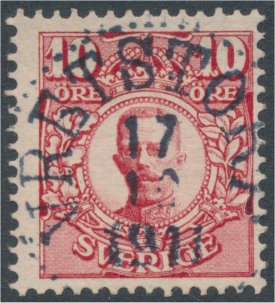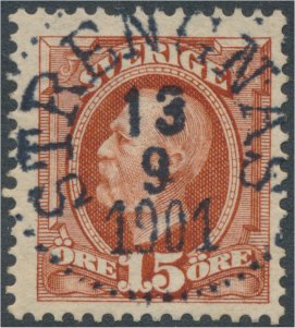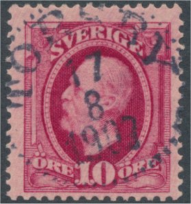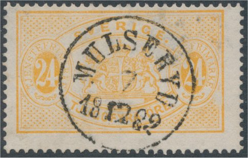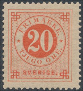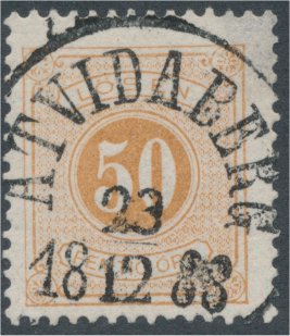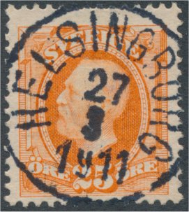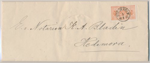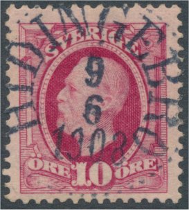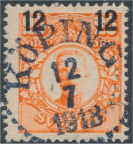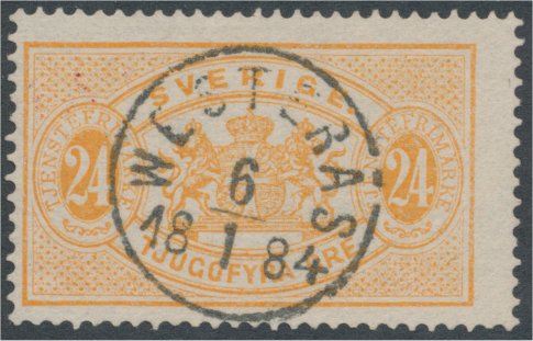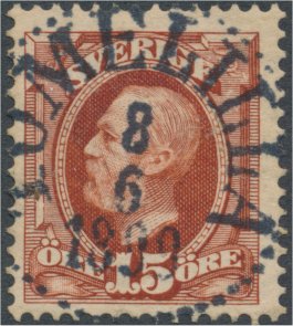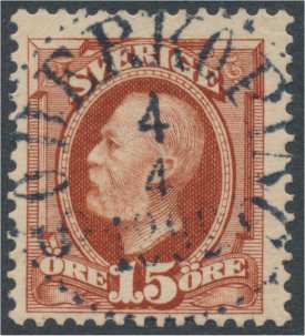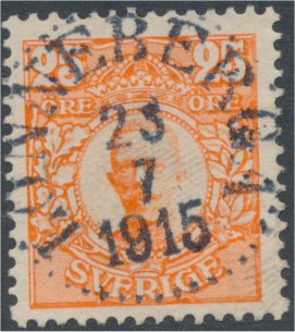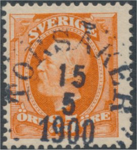 orangeröd nyans på tunt papper, oreparerat märke med fyrkantstämpel Mönsterås