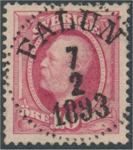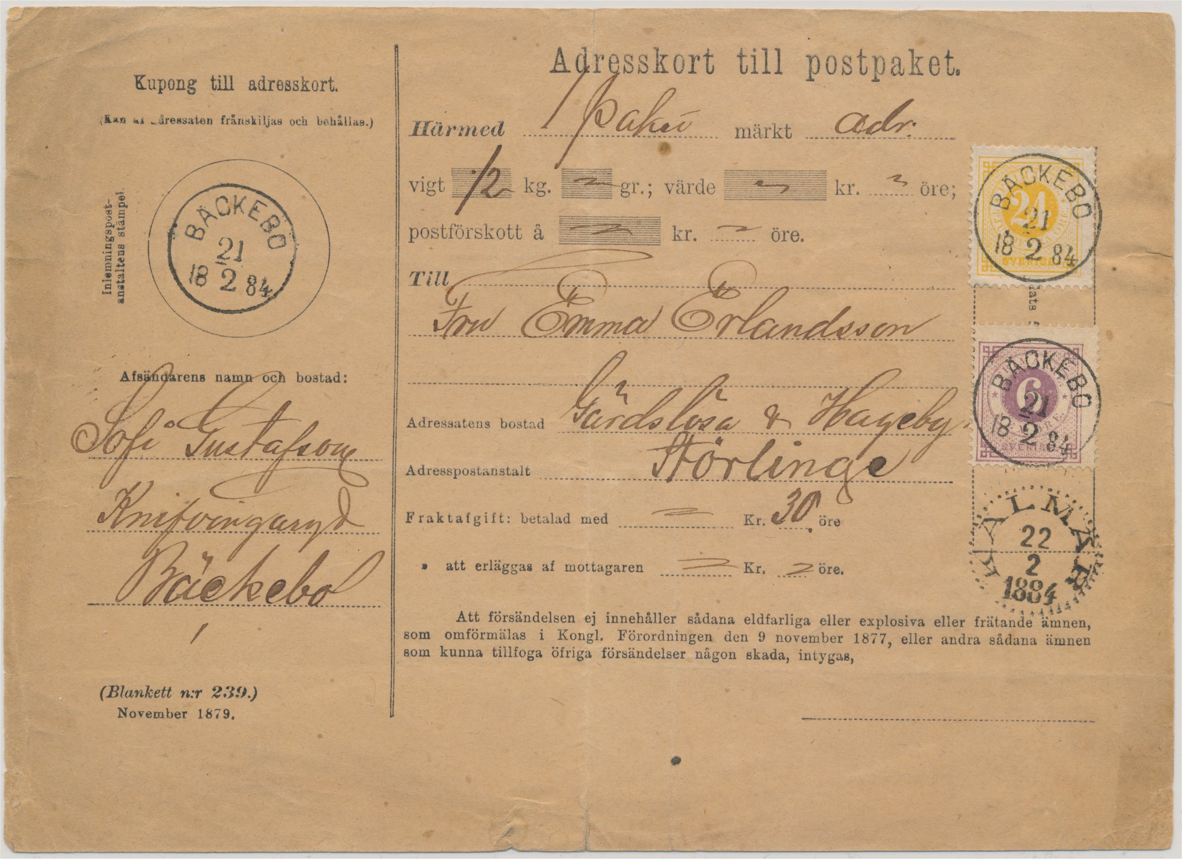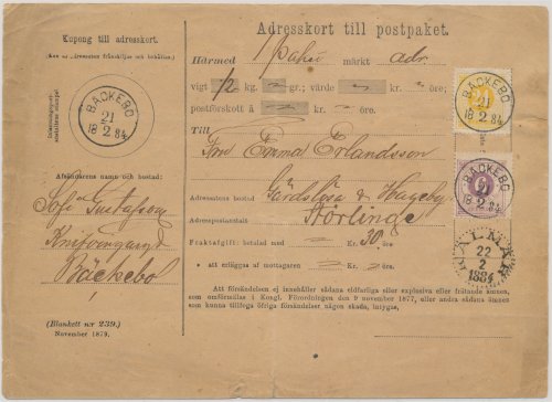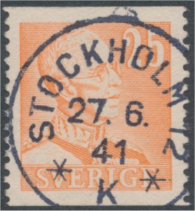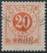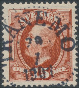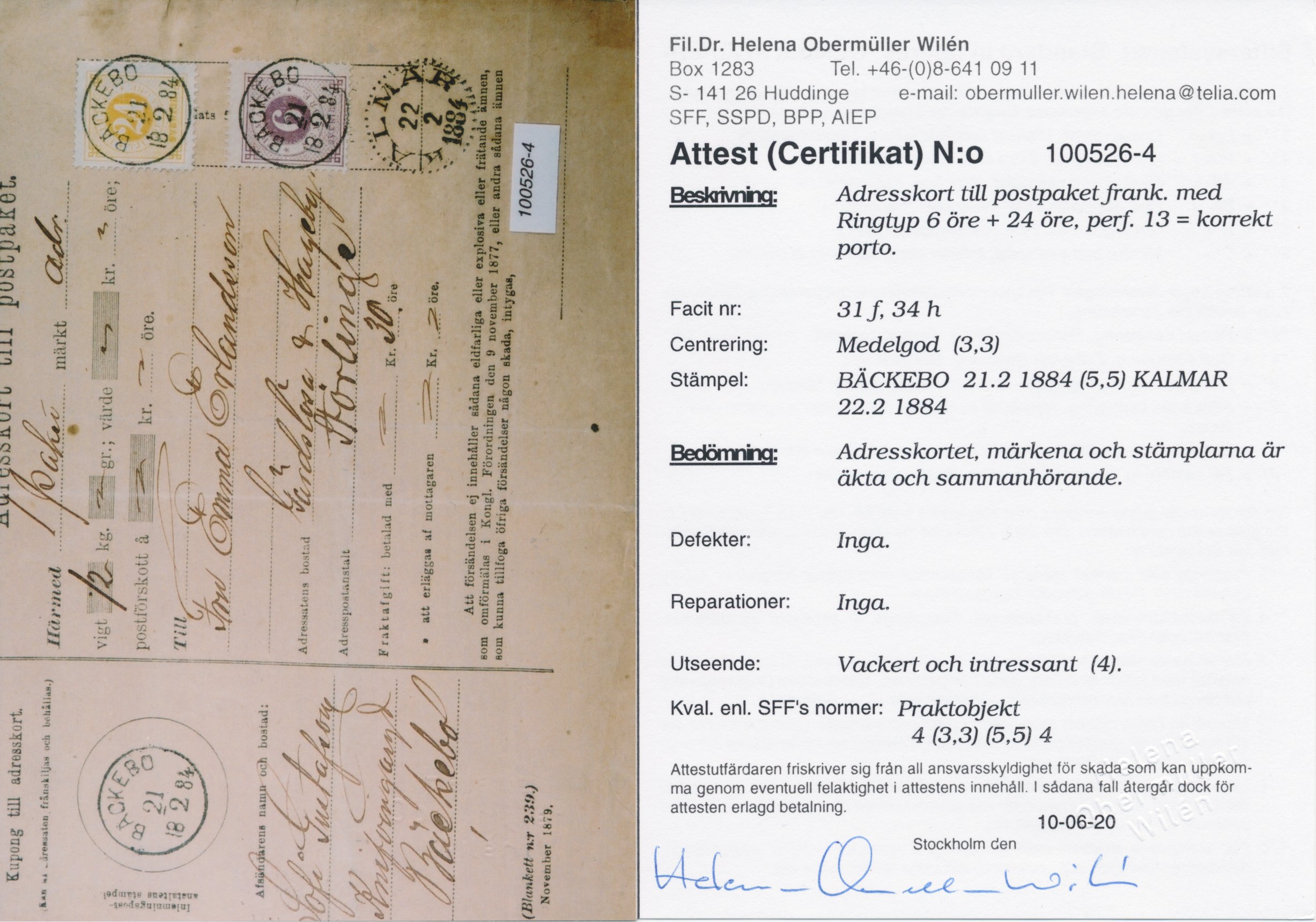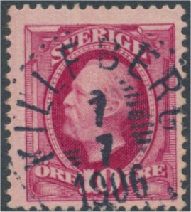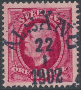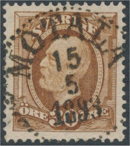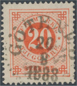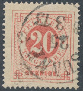 orangeröd nyans på tunt papper, oreparerat märke med fyrkantstämpel Mönsterås