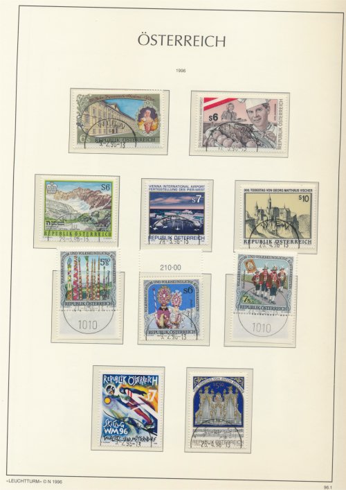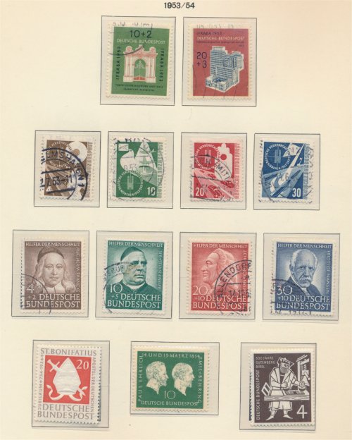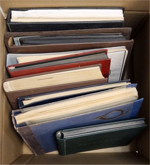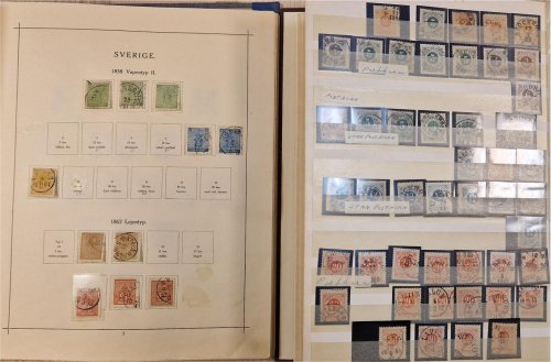 förtrycksalbum 1847-1979 med delvis påsatta fickor, i början glest besatt