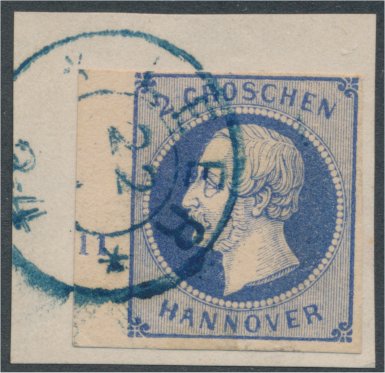 medeltjockt papper, blå nyans i mörkare ton, snedcentrerat med fyrkantstämpel |