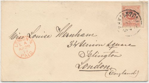 USA 2 cents med kort hörntand, baksidan med reklamtryck