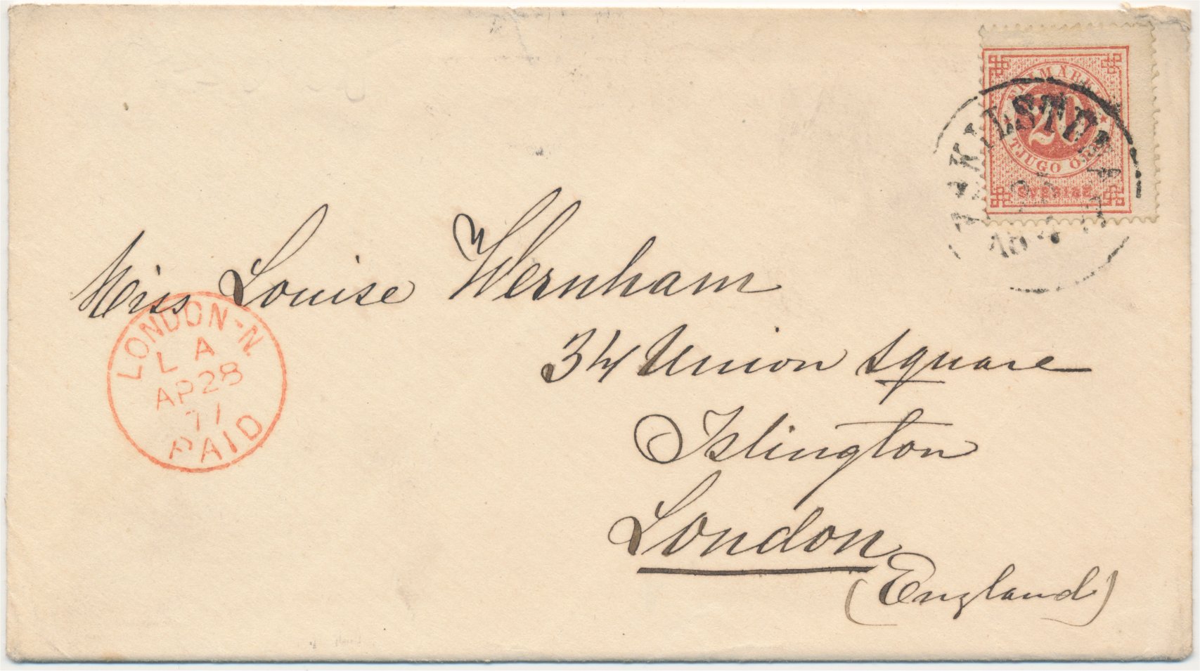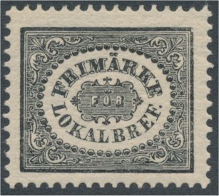 provtryck inför 1871 års officiella nytryck av det svarta lokalmärket. Med