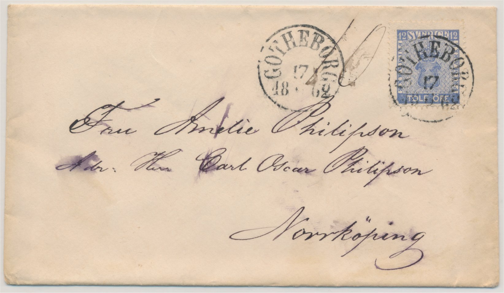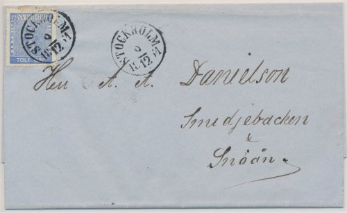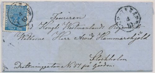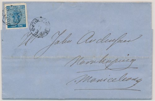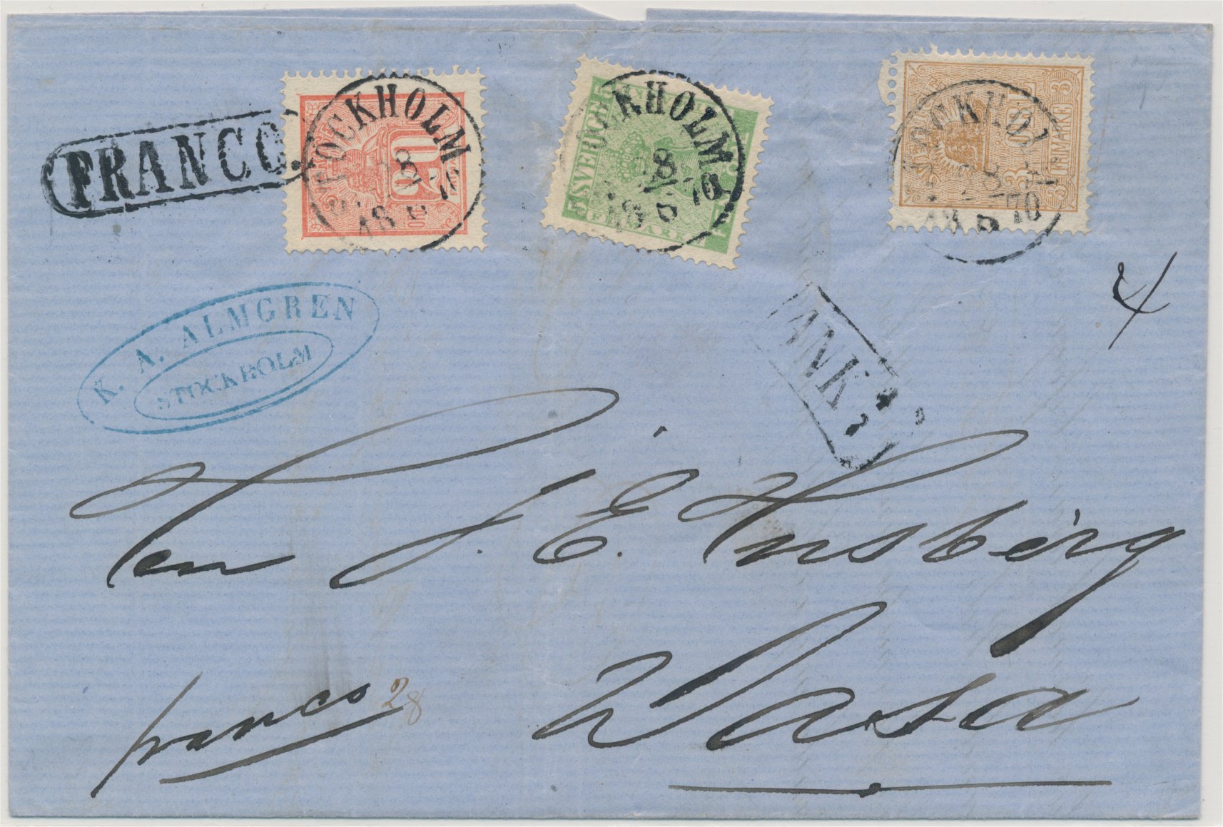 av 28 öre portot till Finland från STOCKHOLM 28.6.1870 med 5 öre Vapentyp