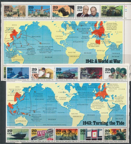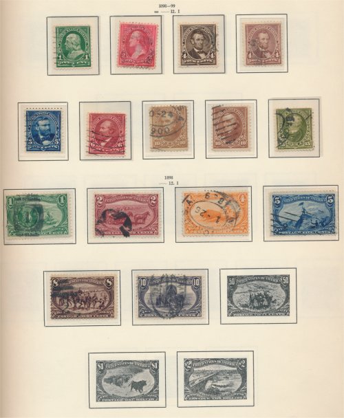 USA på Stella förtrycksblad 1847-1965 med delvis påsatta