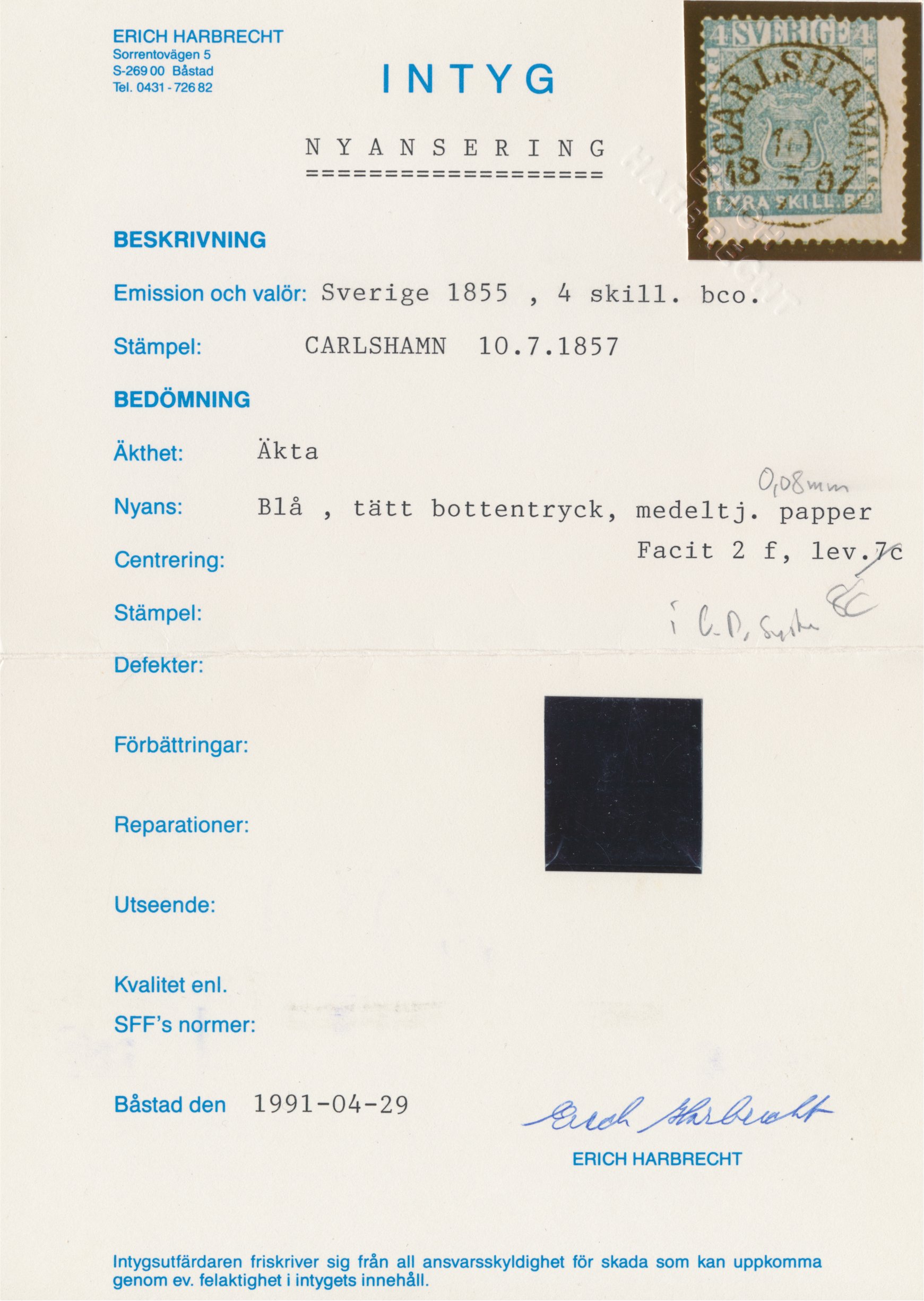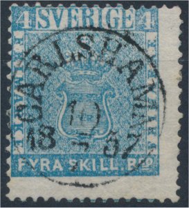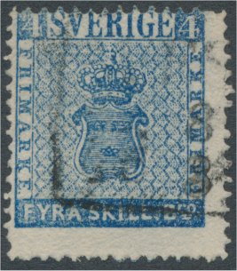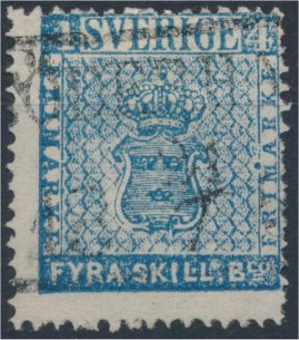 en mindre vanlig ort på 4 skilling blå med medeltjockt papper |