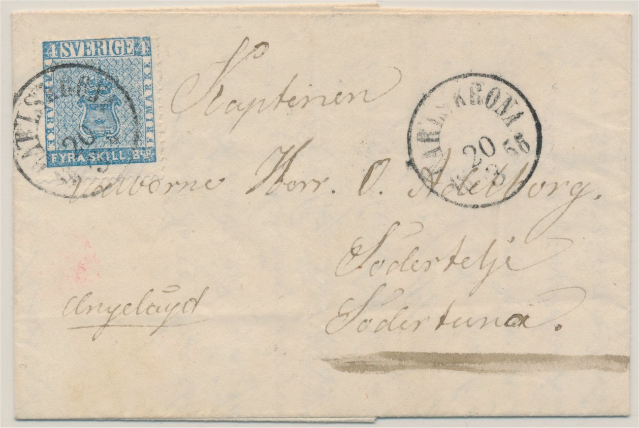 24.8.1855 rättvänd stämpel på 4 skilling med klichefel