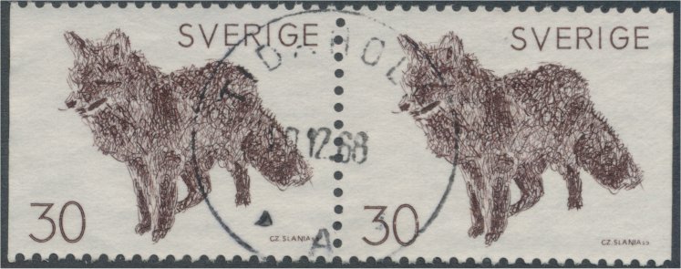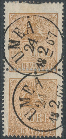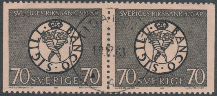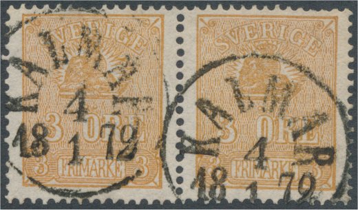 dubbeltänder ö12 och n14 samt 30 öre från position 69 i plåt 2 med skruvavskav på övre högra hörnet |