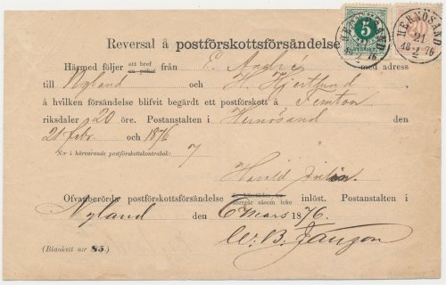 Söderhamn 21.7.185_ på snedcentrerat märke med klichefel